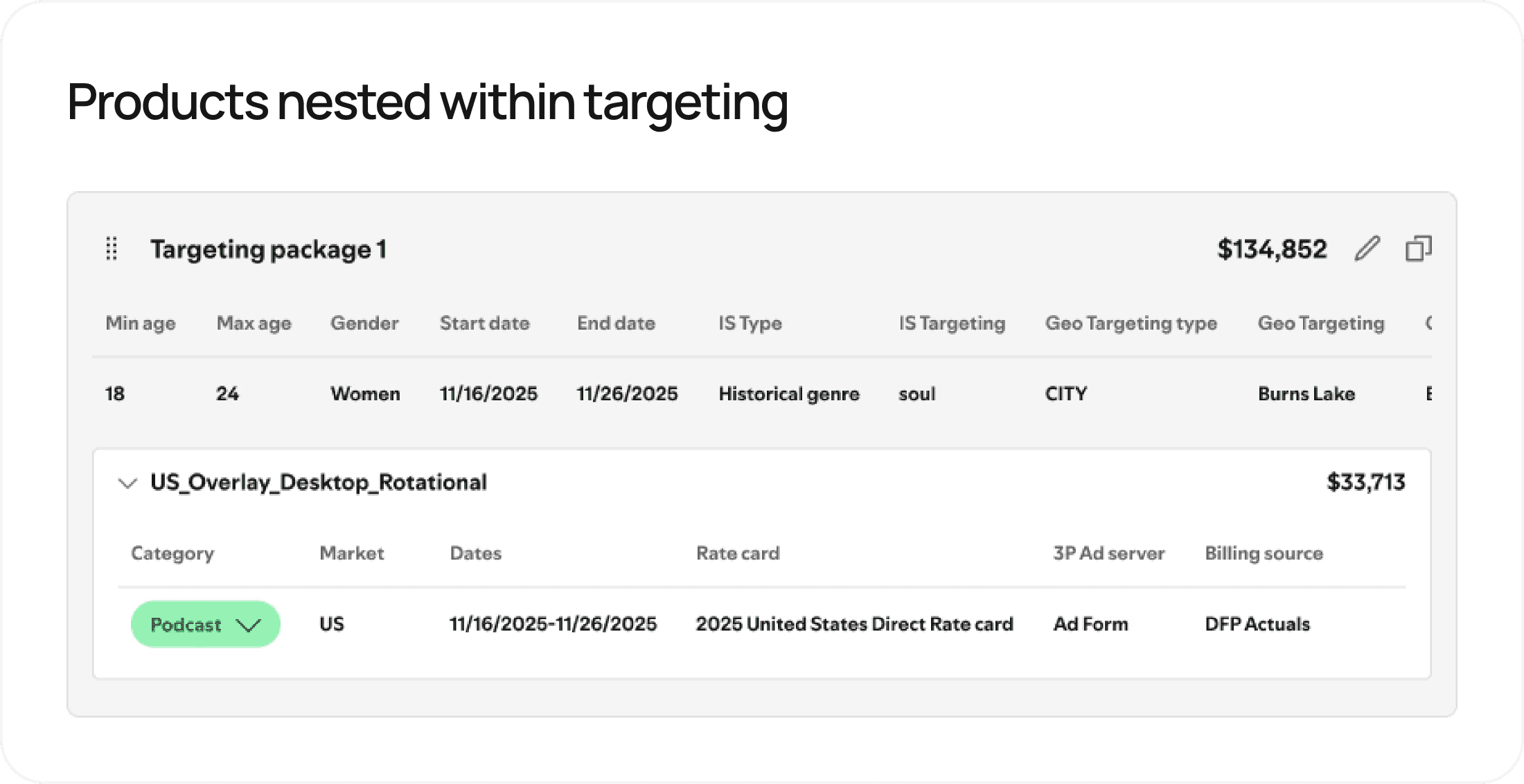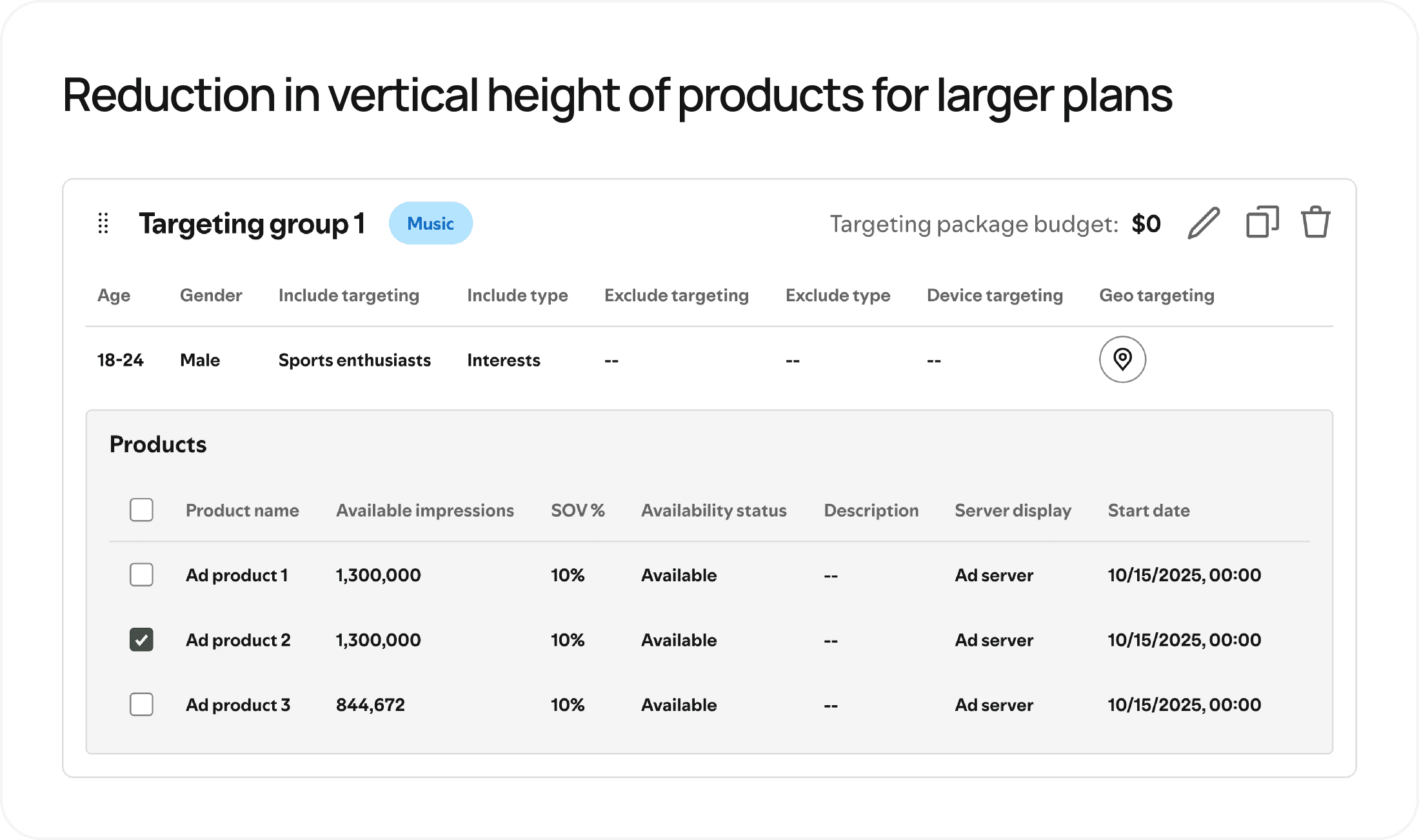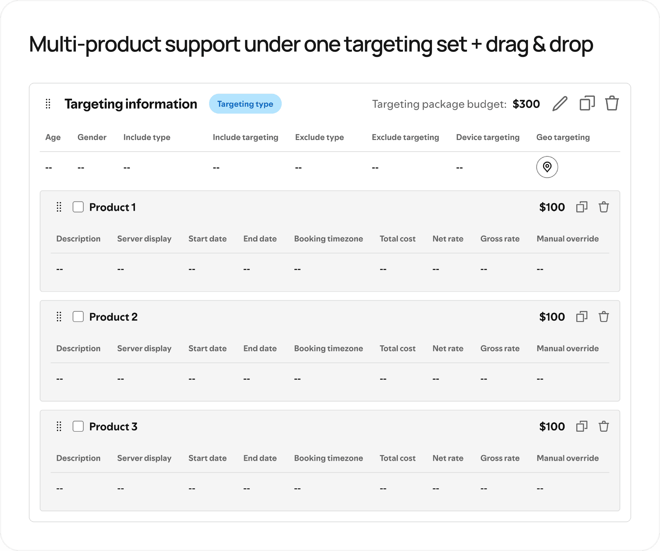 Knowing that the bread and butter of the media planning process was going to be how line items were displayed, this was the first section of the workspace I set out to solve for. Here is how it evolved: