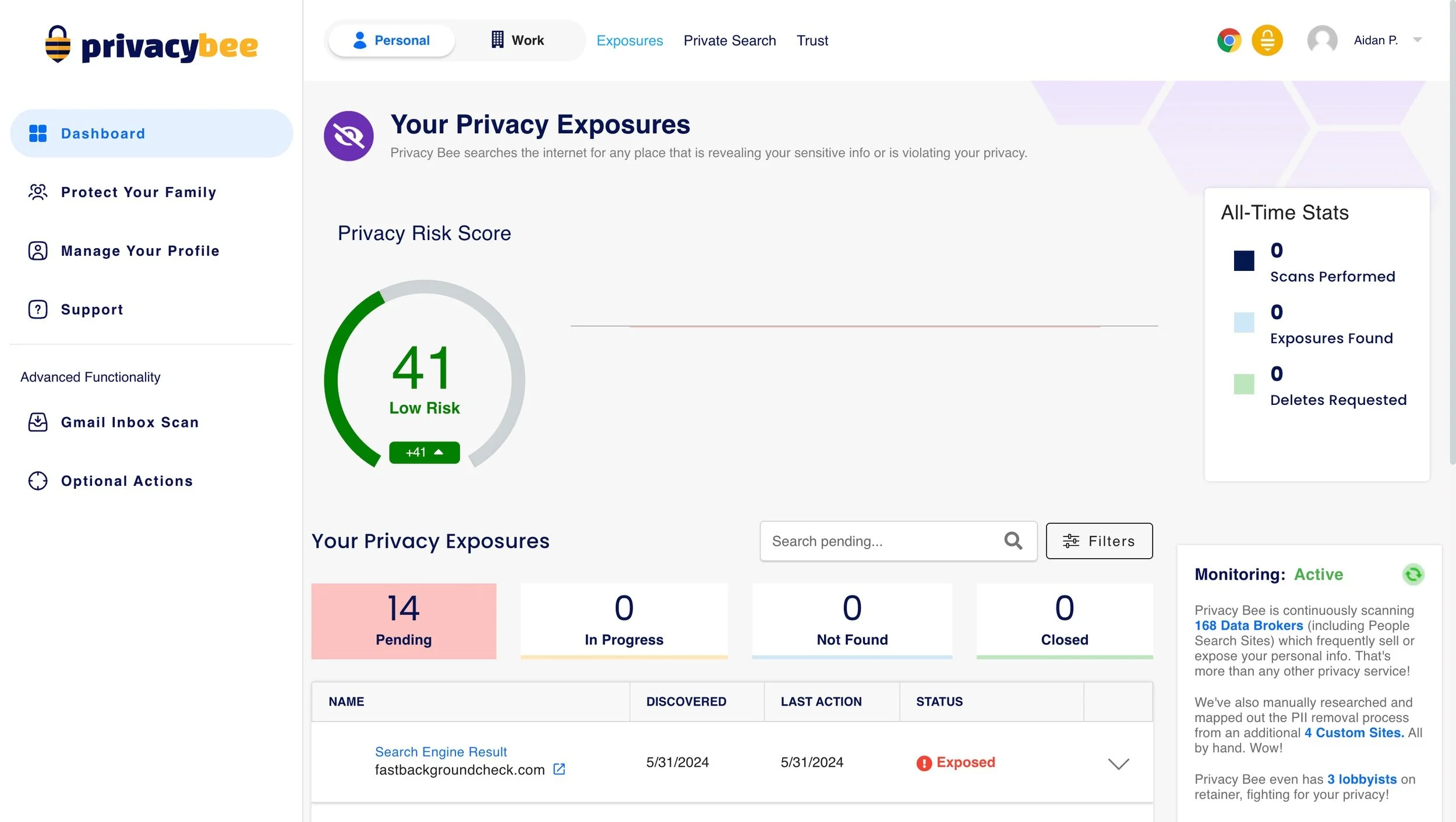 Privacy Bee specializes in removing personally identifiable information (PII) from the internet. Data brokers aggregate and sell data on millions of Americans, enabling targeted ads, identity theft via social engineering, and unauthorized account access by hackers. I was tasked with redesigning the consumer-facing dashboard, where thousands of users go every day to check the status of their removals.
